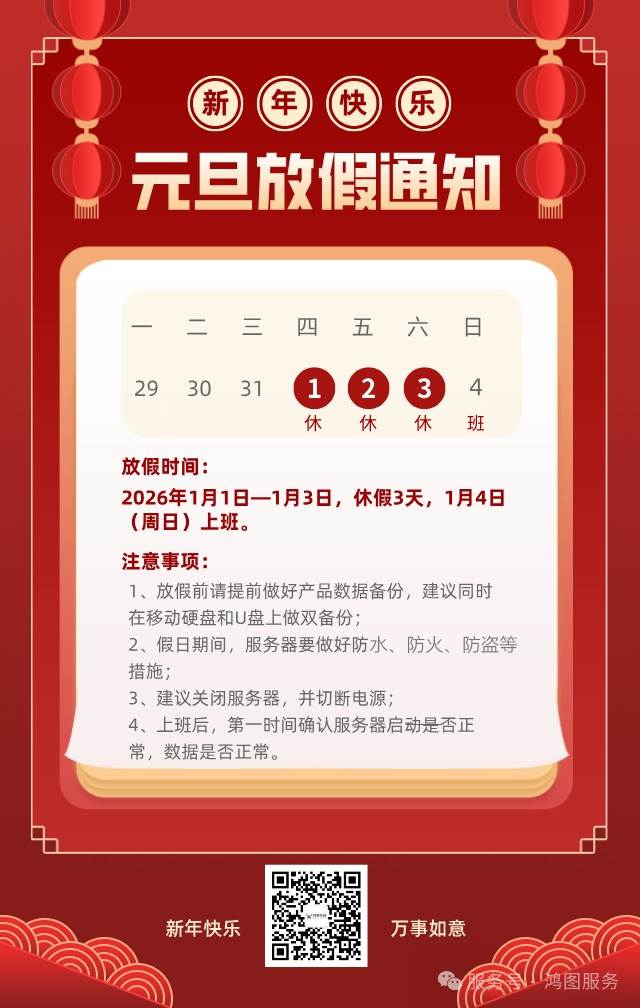 【假期】2026年鴻圖偉創(chuàng)-用友軟件元旦放假及值班安排